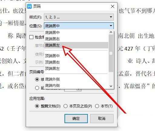 4、在打开的页码设置窗口中,点击“位置”的下拉按钮。