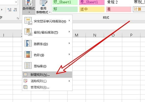 3、接着在打开的条件格式下拉菜单中,我们点击“新建规则”的菜单项。