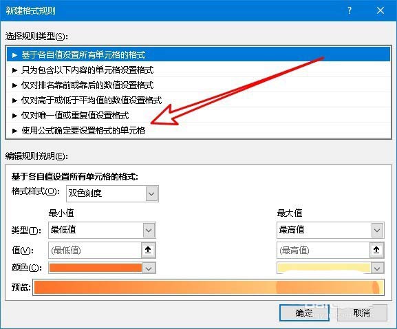 4、然后在打开的新建格式规则窗口中,我们找到“使用公式确定要设置格式的单元格”菜单项。