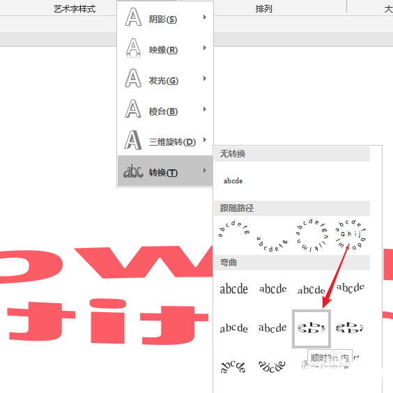 5、拖动文本框四周的控制点和中间黄色的控制点,则文字具有了圆环效果。