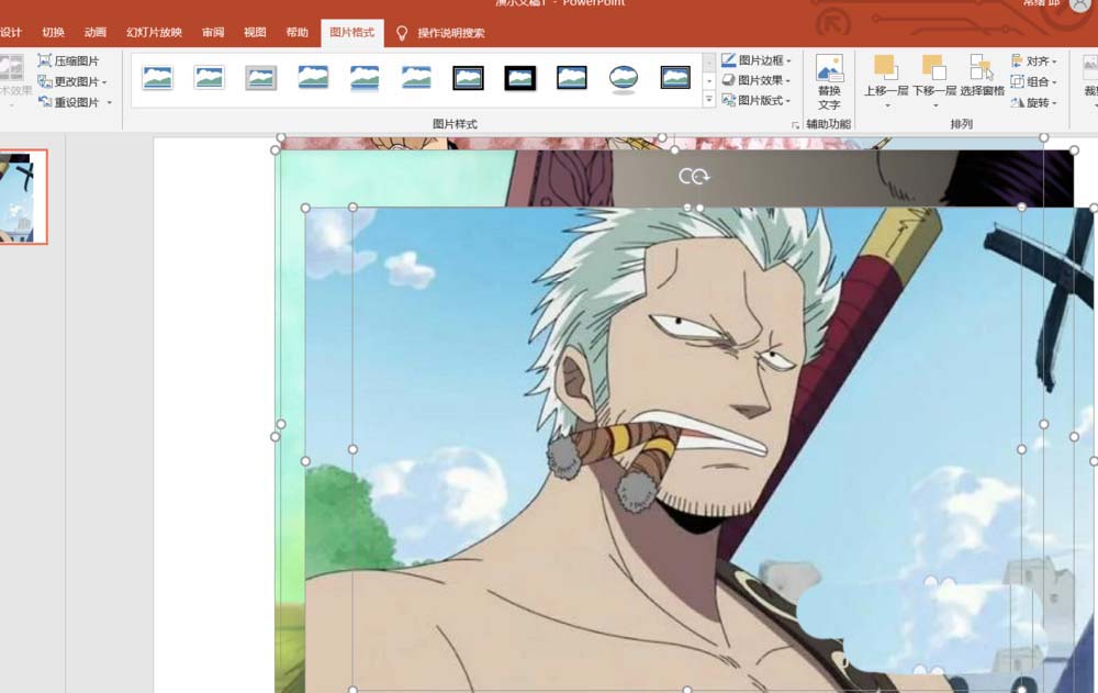 2、插入完成之后,我们调整好图片的大小和位置,让图片的宽度,高度都一致,而且铺满整个页面。