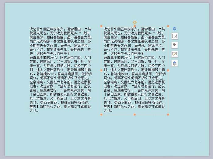 4、按照同样的方法输入要显示的内容,调整文本框的位置,也是分栏显示的效果。
