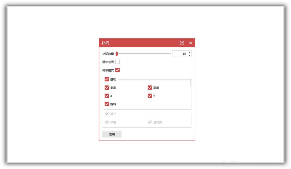 6、在打开的窗口中设置补间数量,点击应用。