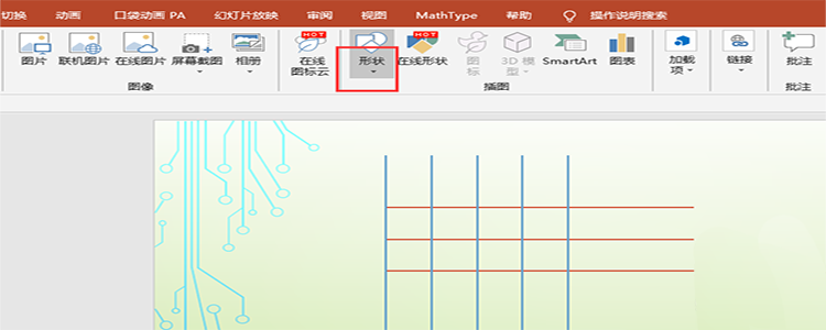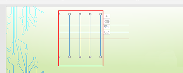 3、画5条竖线。组合好3条横线之后,我们在幻灯片中插入5条属性,同样也要对齐,左右的距离要一样。