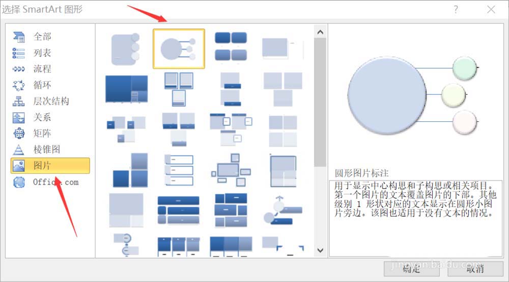 5、在里面找到左侧的图片选项卡,点击进入,找到第一个图形图片标注,如下图所示。
