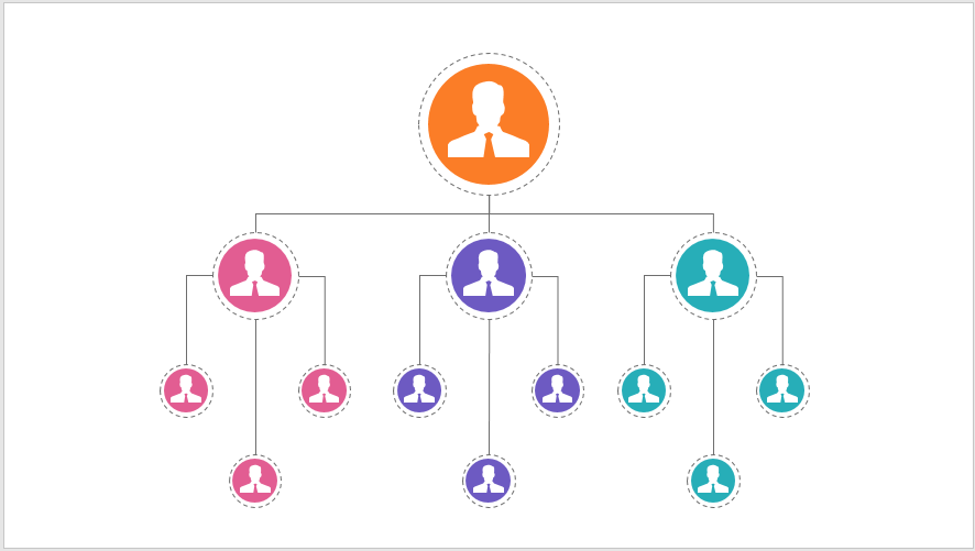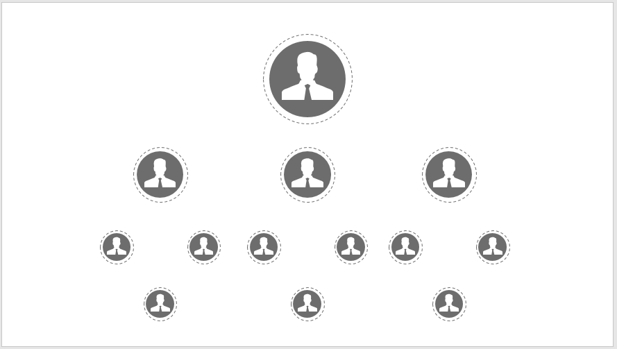 本文介绍PPT中怎样使用圆形制作简约的职位层级图。使用圆形,方便放置人物头像,也比较符合习惯。同时通过圆形的大小,体现人物的层级。