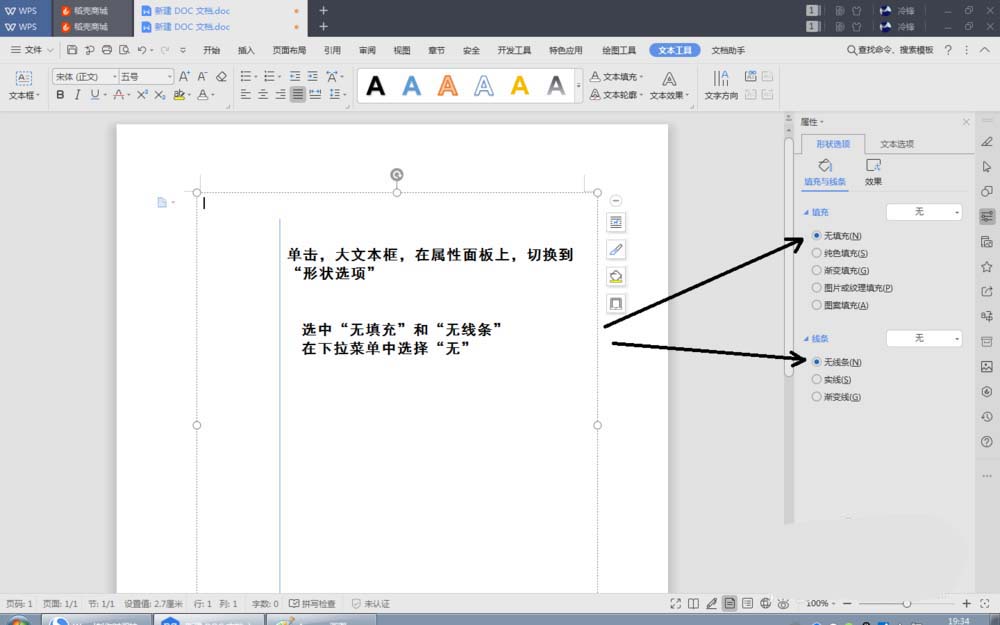 2、插入一个大文本框,然后取消填充颜色、轮廓颜色。