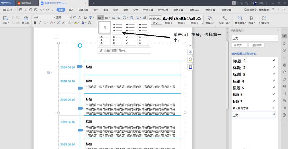 8、单击“项目符号”选择第一个项目符号。添加好项目符号,修改标题和文字内容