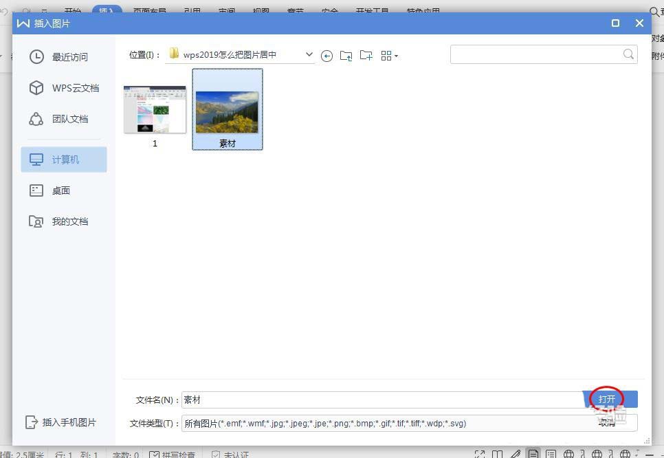 2、选择需要居中显示的图片,单击“打开”按钮。