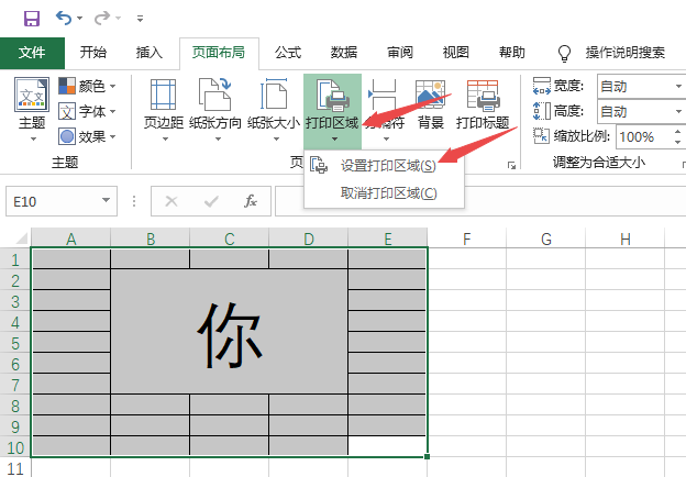 3、然后点击打印区域,之后点击设置打印区域;