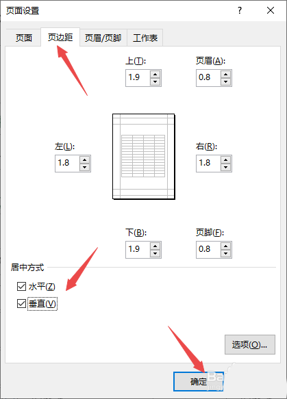 7、之后点击页边距,然后将水平和垂直都点击勾选上,之后点击确定;