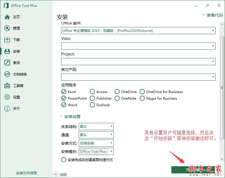 4、其它设置随意,点开始安装,等待安装完成激活即可!