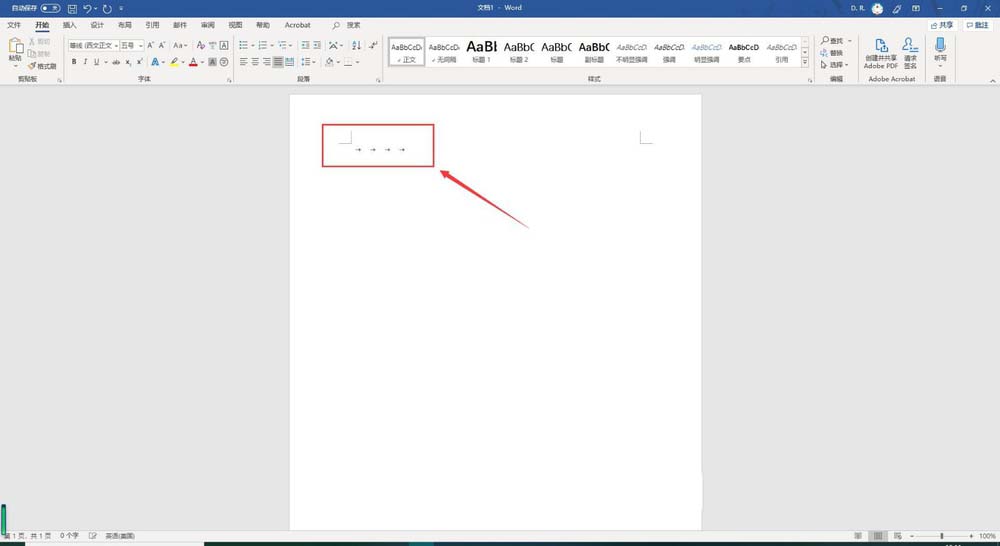 1、如图所示,点击TAB键,会出现如图所示的制表位,这会让文章看着不是很清爽,下面来告诉大家如何去掉制表位的标记