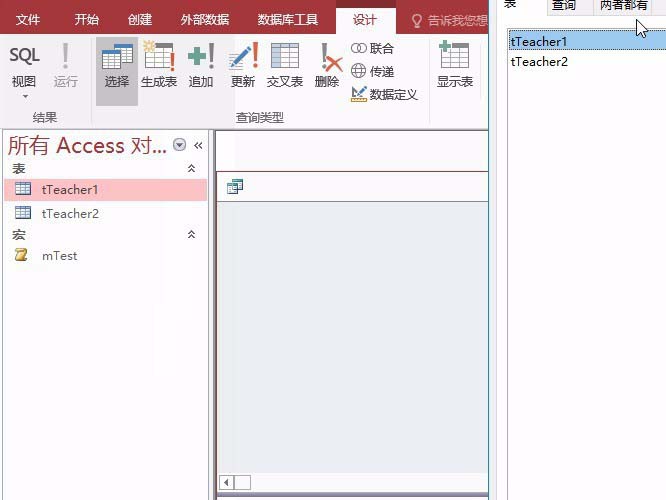 2、选择创建查询设计按钮