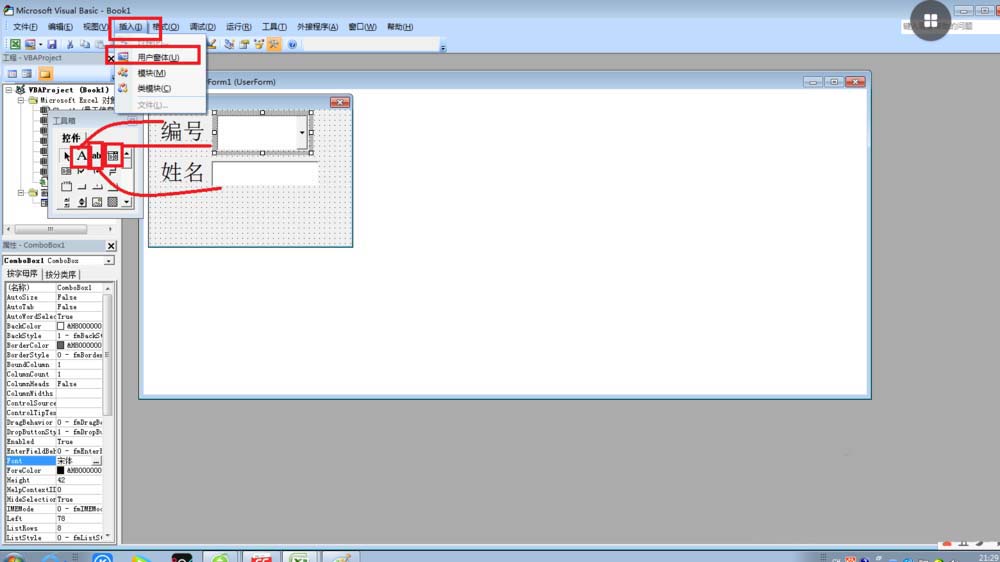 6、这样表格制作完成,接下来就是同时按ALT+F11打开,然后就点击插入——窗体,去设计记录窗体并录入到相关表中。
