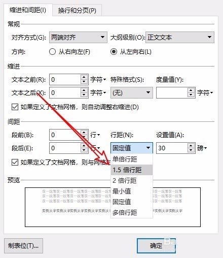 4、然后在打开的窗口中,我们点击行距下拉按钮