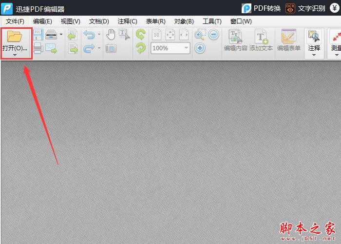 我们需要先运行迅捷pdf编辑器,软件界面打开之后,需要点击“打开”选项,将需要进行编辑的PDF文件打开。