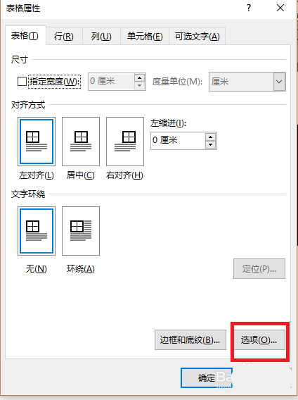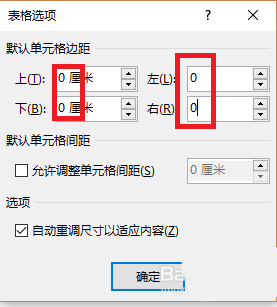 3、选中表格「右键」-「表格属性」-「表格」-「选项」,将上下左右的边距全部设为「0」。