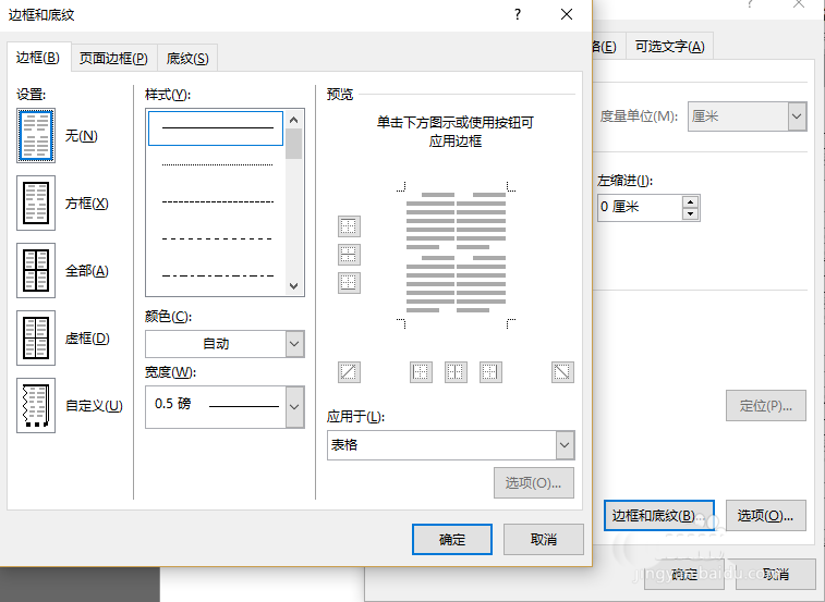 8、选中整个大表格,「右键」-「表格属性」-「边框和底纹」-「边框」中设为「无」,取消所有的表格线条。
