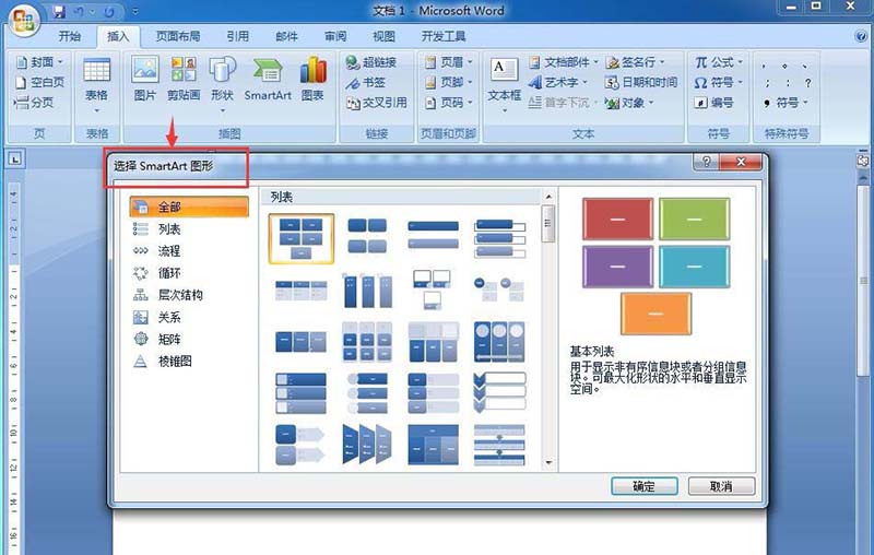 总结:打开word,点击插入菜单,找到并点击智能图形,在选择智能图形页面点击列表,找到堆叠列表后按确定,然后输入内容、调整样式即可。