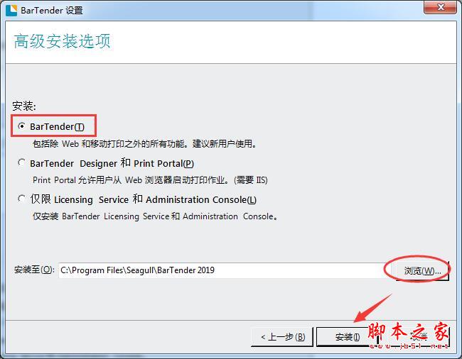 3、选择第一项安装,默认安装目录【c:\program files\seagull\bartender 2019】