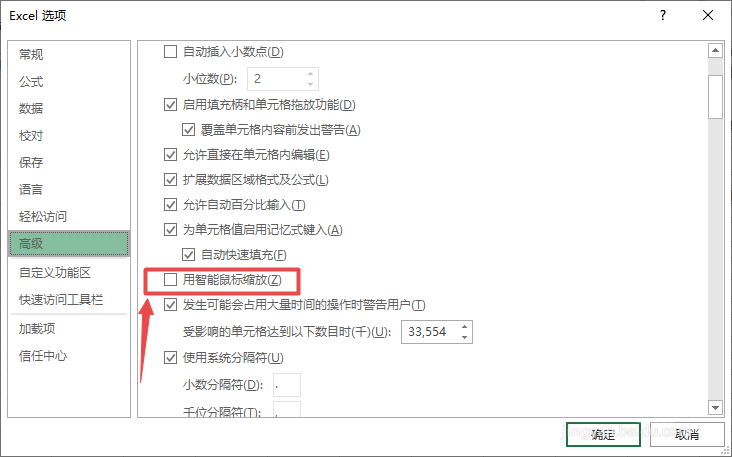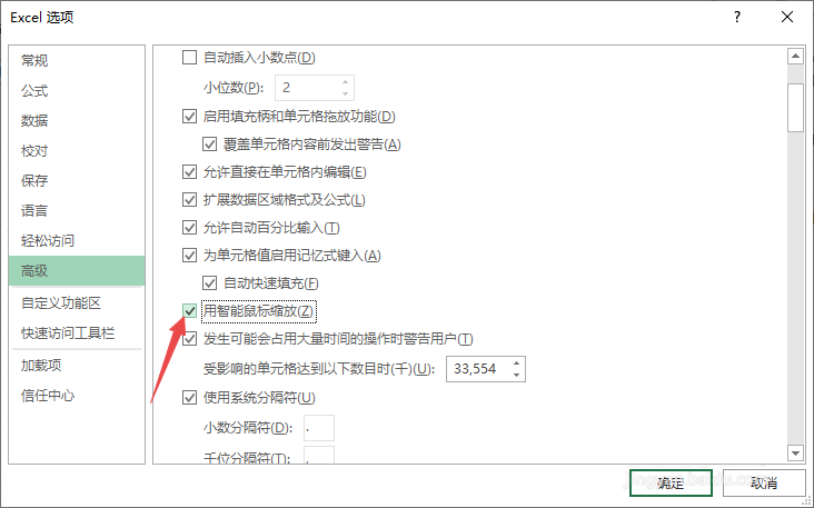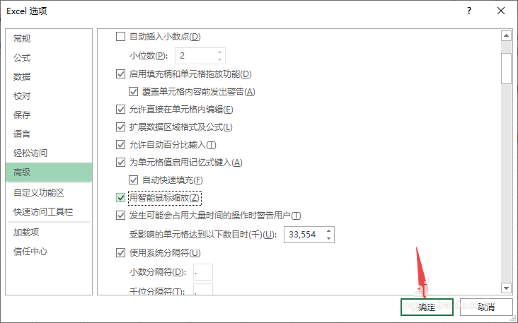 7、最后,我们点击确定即可。这样我们便开启了用智能鼠标缩放了。
