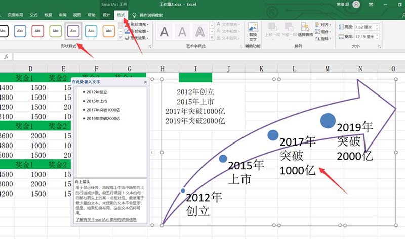 7、这样就可以看到我们在各个点都已经创建了事件,然后我们点击smartart的格式,可以为我们的大事件时间轴调整自己喜欢的格式。