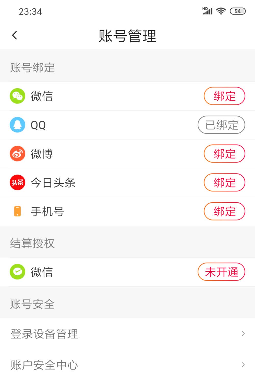 2、打开设置找到账号管理,点进去就可以看到绑定的微信,qq,微博,今日头条,手机号了。如果你想要解绑哪个都可以。