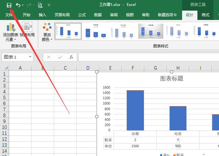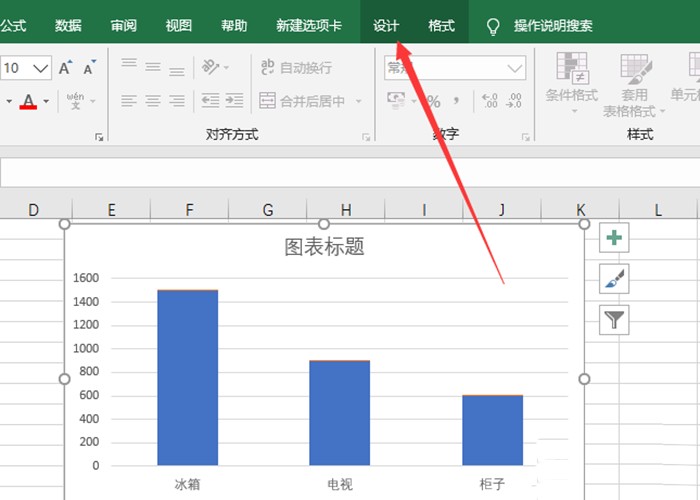 1、首先打开Excel的图表的文件选中图表后单击“设计”选项卡。