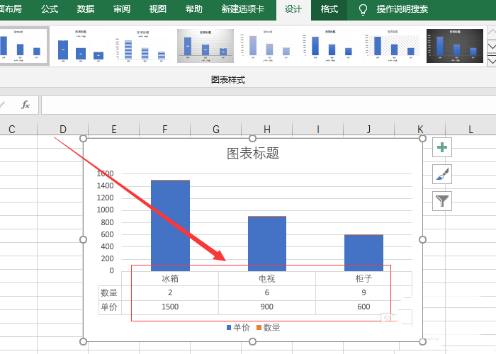 5、这时图表的下方显示了数据表格。