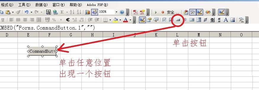 2、在Excel表格任意位置添加【按钮控件】