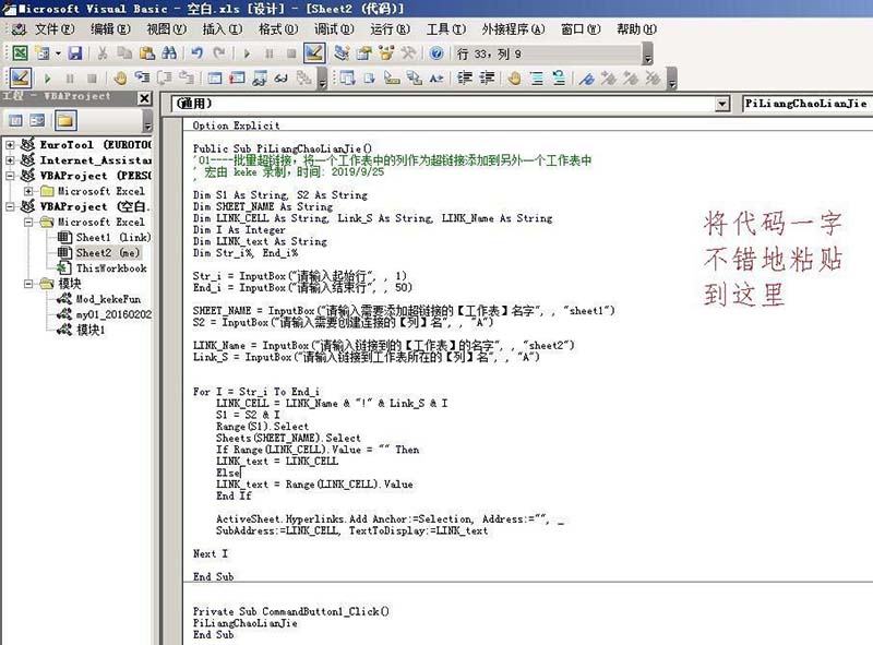 Public Sub PiLiangChaoLianJie()