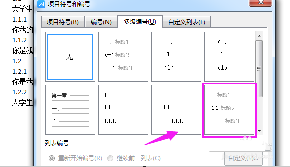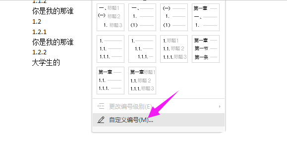 4、在编号下方有【自定义编号】,如图。