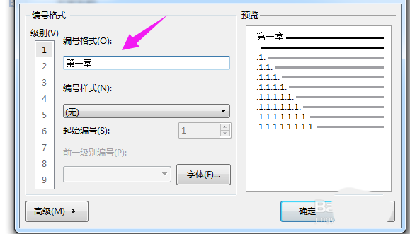 7、最后我们输入下【编号格式】,这样就设置完成了,如图。