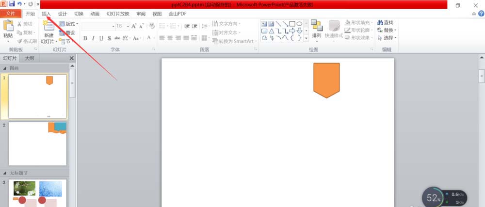 2、找到开始按钮旁边的插入按钮,点击进入,如下图所示。