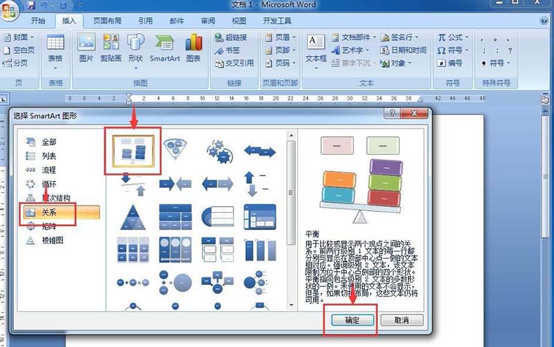 4、点击关系类别,选择平衡,然后按确定;