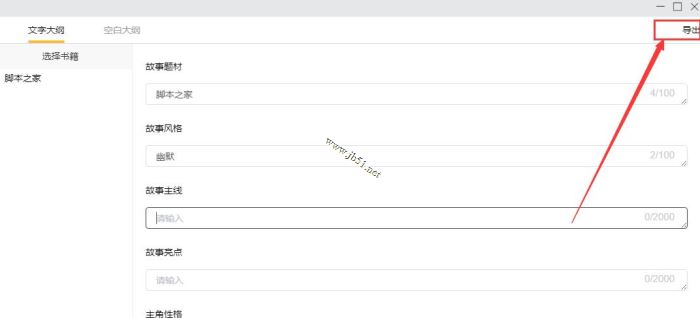 4、空白大纲功能栏目比较适合写作老手使用,用户只需在右边的空白内容输入本书的情节、梗概、故事介绍即可,除了撰写整本书的大纲,你还可以添加情节大纲与人物设置,只需点击+号即可新建情节与人物,如下图所示: