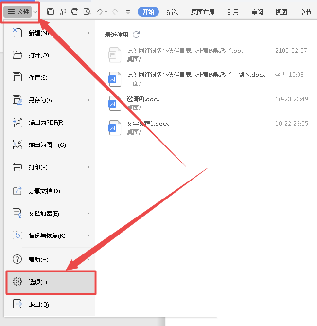 5、接着我们选中“文件”找到“选项”,如图
