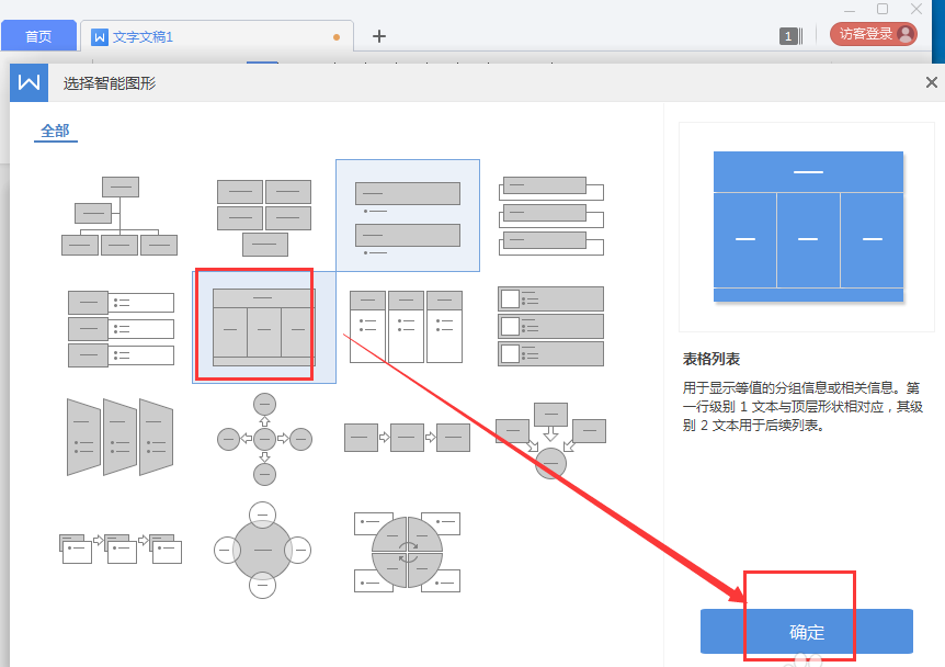 wps中我们可以通过智能图形工具创建各种列表,那么怎么创建表格列表呢?下面我们就来看看详细的教程。