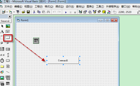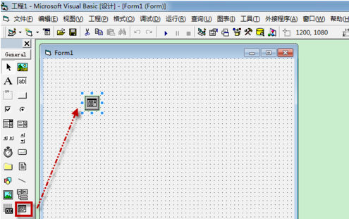 3、在左侧的控件工具箱中拖拉刚才添加的Common Dialog控件到窗体中即可添加该控件。