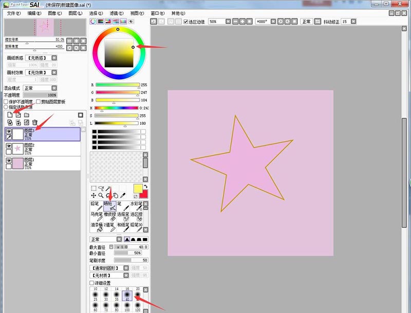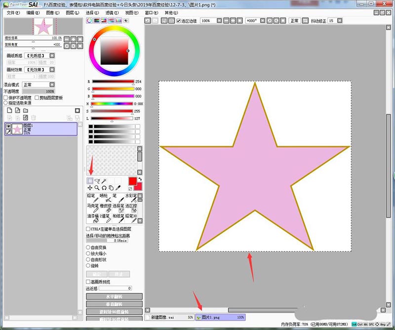 5、打开【SAI】,将五角星拖入后,使用【框选】,快捷键【Ctrl+C】复制图形。