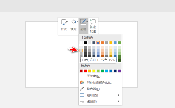 4、右键单击矩形,选择边框填充灰色。