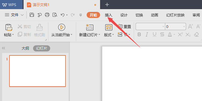 1、打开wps演示,点击插入。