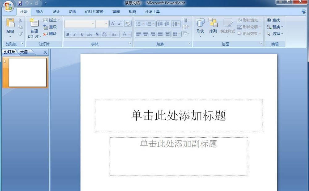 1、打开Powerpoint 2007软件,进入它的主界面中;
