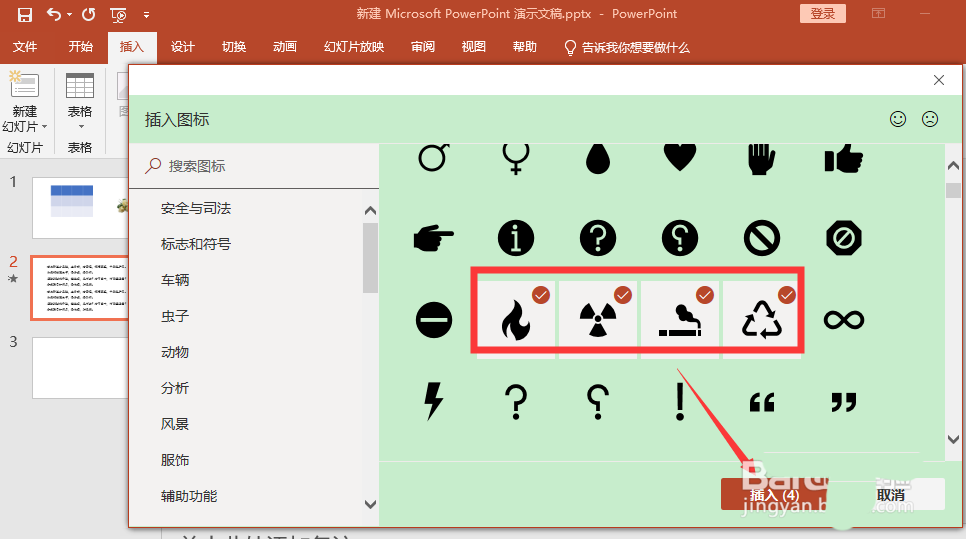 4、加载图标需要一点时间,等待加载完成,选择自己需要的图标,可以多选,选择后,点击“插入”