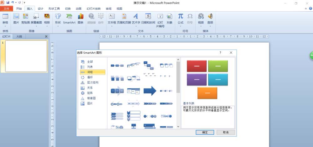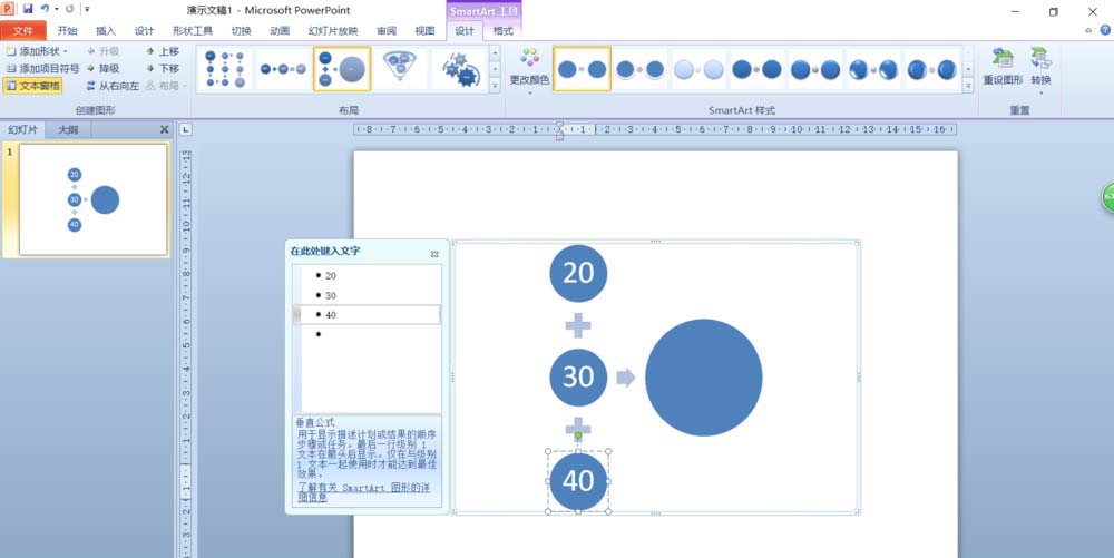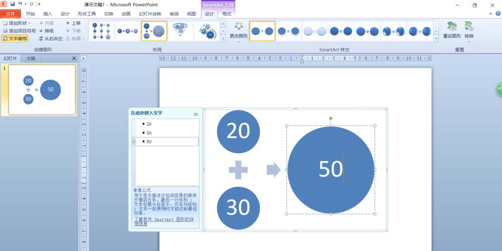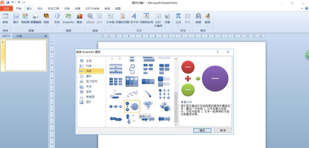 4、单击“确定”,“垂直公式”流程图便插入到幻灯片窗格。
