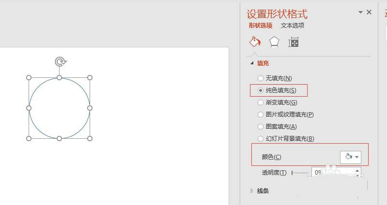 3、选中其中一个圆,右键|设置形状格式,将填充色设置为白色。如此,将另外一个圆的形状样式也设置为白色。