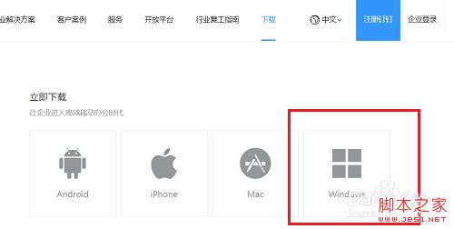 第一步在电脑上打开百度,搜索钉钉,进去官网,选择下载钉钉,这里选择windows版本的,如下图所示: