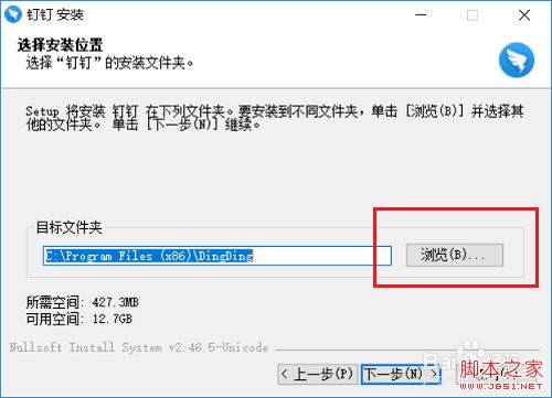 第四步选择钉钉的安装路径,默认是安装在c盘,我们可以选择安装在d盘,点击下一步,如下图所示: