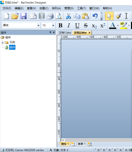 1、打开BanTender2019条形码制作软件,新建"空白模板"点击"下一步".将相对应的打印机信息,文档属性以及打印机属性设置完成后,一直点击"下一步",直到行数和列数设置界面,将"行数","列数"全部设置为"2",如图1